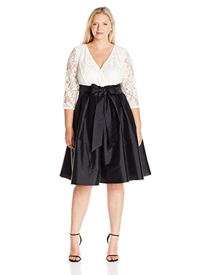 Guinevere lace surplice top and taffeta flared skit with sash dress