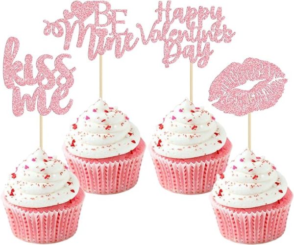 - ?Premium Material: These glitter Valentine Cupcake Toppers are made of high quality 300 gram glitter card stock and food-grade toothpick, very safe to put them on cakes, cupcakes, ice cream, fruits, pie, dessert, cheese or any dish and food appetizer you want to decorate.