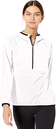 Plain Weave, CB DryTec, CB Weathertec, Moisture wicking and UPF 40+, half zip with contrast zipper, Contrast fabric at mock neck and yoke, 2-way stretch plain weave, Contrast binding at sleeve hem and partial bottom hem, C&B Pennant at back half moon, Attached hood, Reflective tape at zipper and zipper garage, Moisture wicking and UPF 50+, Colorblock, Single pouch zip pocket at center front, Onseam side pockets, Contrast binding at hood, cuffs and bottom hem, C&B patch at shoulder, C&B patch at left sleeve, Imported