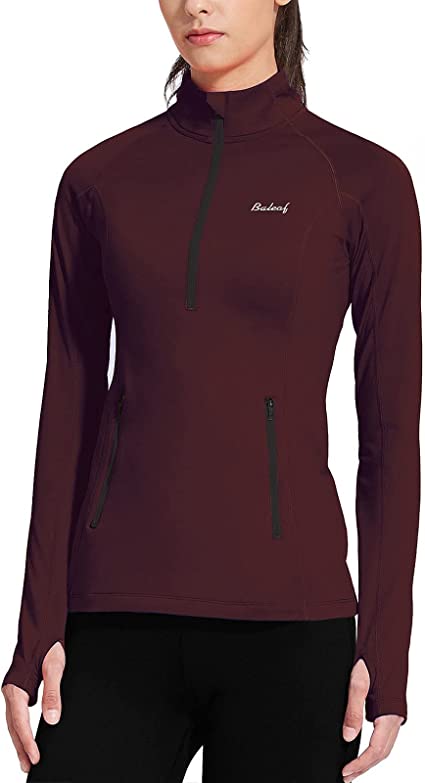 BALEAF Women’s Thermal Fleece Half Zip Thumbholes Winter Long Sleeve Running Pullover Jacket for Cold Weather