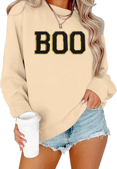 - Ideal Gift: Casual BOO sweatshirt with funny graphic makes it a great gift for Halloween, teacher’s day, thanksgiving day, fall holiday. It can be a ideal present for your friends, family, teachers that makes them feel your best wishes.