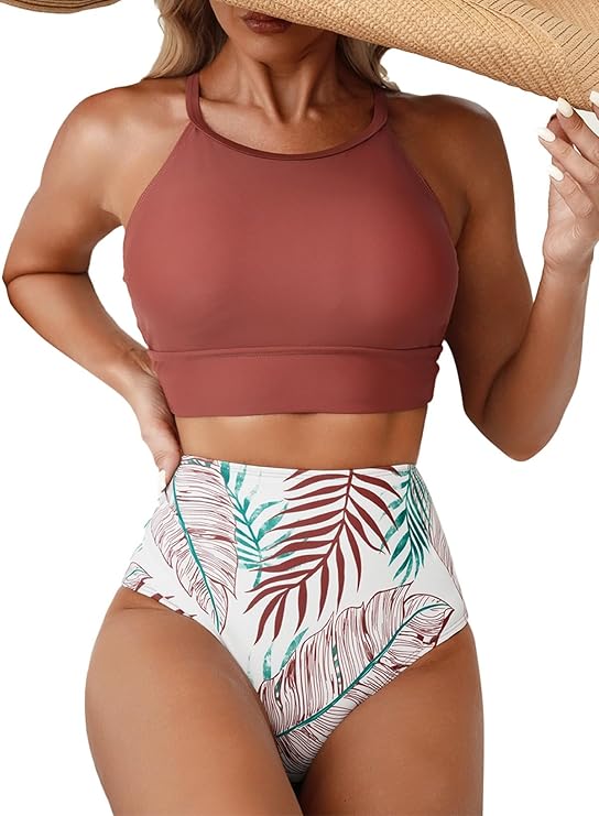 - Tropical leaf print hawaii modest bikini bottoms can provide good tummy control and full coverage, makes you look slimmer. No matter what your figure, this high waisted swimsuit will flatter you