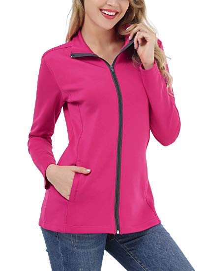 This sport jacket with side seam pockets and high collar is perfect for those chilly fall/spring mornings. It also works perfectly