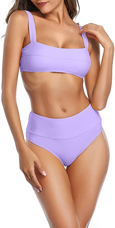 Go get your sunshine on! This bathing suit including a stripy paneled bikini top in a square cut and sleek, cheeky swim bottoms is ready to go. The bikini top has removable cups, while these bottoms are double lined for coverage.