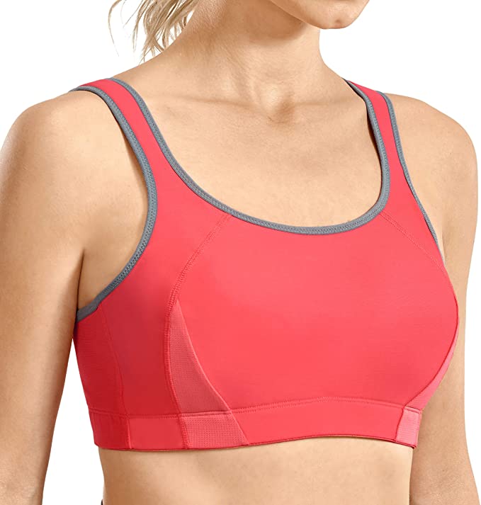 This bra is intended to provide high level support, this wireless sports bra controls shock and offers the necessary support during your workouts.Mesh panel wicks away moisture to keep you cool and dry.Elastic wings provide good fit.