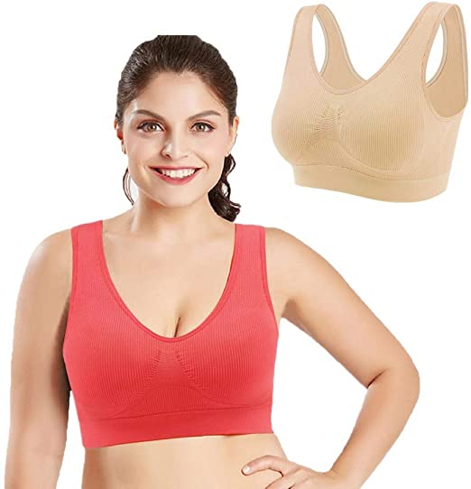 Stretchy Seamless Low-support Sports Bra,with added stretch, our seamless bra suits for small and plump chest, light sports such as yoga, gym, jogging, sleeping, working and daily wear.