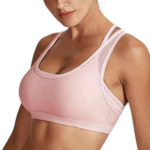 CRZ YOGA Women’s Wirefree High Neck Racerback Yoga Sports Bra Workout Bra Top