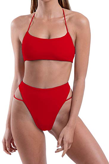 Fadalo Women Spaghetti Strap High Leg Cut High Waisted Two Piece Bikini Set Swimsuit