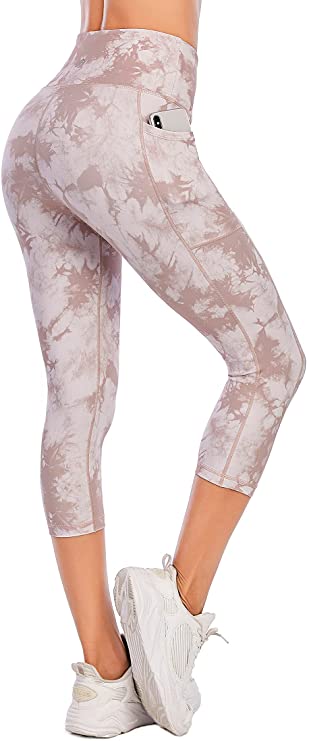 PARWIN High Waisted Women Workout Capris Running Capri Leggings with Pockets