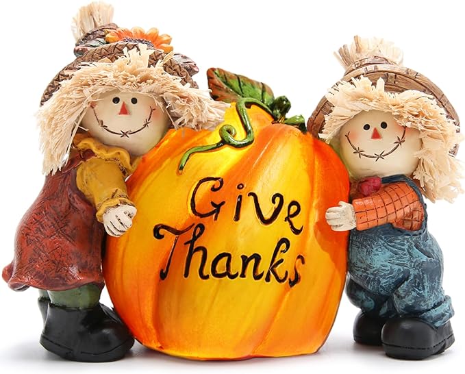 Hodao Fall Thanksgiving Resin Scarecrow Pumpkin Figurines – Adorable Scarecrow Embrace Pumpkin Decorations for Home Indoor Table Decor-Fall Thanksgiving Gifts