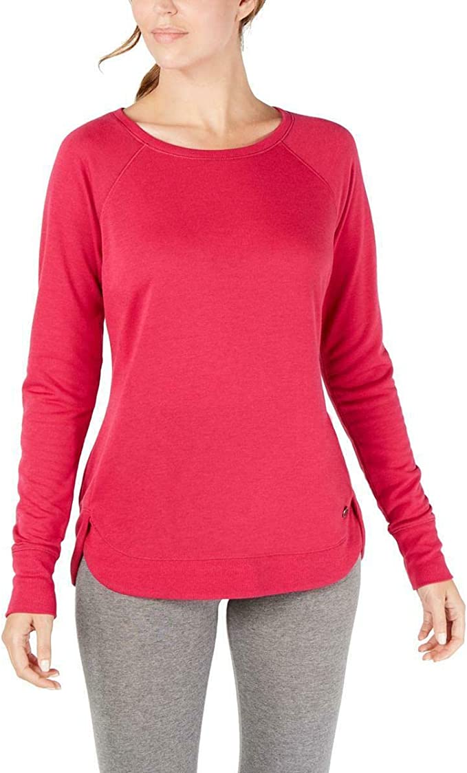 A stylish remix of your favorite sweatshirt, this French terry top from Ideology is finished with a tulip hem for a fresh look. Hits at hip; semi-fitted; tulip hem INSPIRED FOR: Athleisure French terry Scoop neckline; long sleeves Polyester/rayon/spandex Machine washable Imported