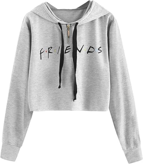 - Women’s lightweight hoodie,girl’s crop top hoodie ,cute friends letter print hoodie ,lightweight sweatershirt for women,long sleeve letter printed top for women