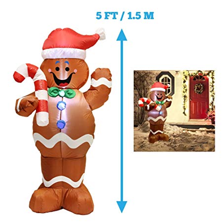 LED Light Up Giant Christmas Gingerbread Man Inflatable includes a 5 Foot Inflatable Gingerbread Man with a fixed Sand Bag, 2 Fasten Ropes, 4 Ground Stakes and a Plug with UL Certification.