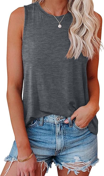 - Design: Loose fit womens summer tops feature crew neck and sleeveless Design, allowing for easy movement and ultimate comfort. The simple elegance of the solid color makes this ladies top a timeless classic