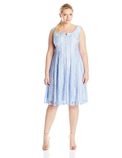 Sleeveless all over lace, A-line knee length dress with slit- neckline.