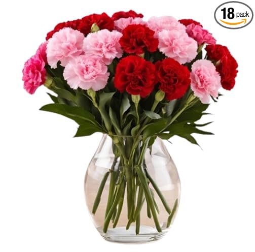 - Composition: The bloom collection includes 18 Red And Pink Carnation With Vase(Vase style, color, or shape may vary). We ship in a specially designed box that protects the flowers during transit.
