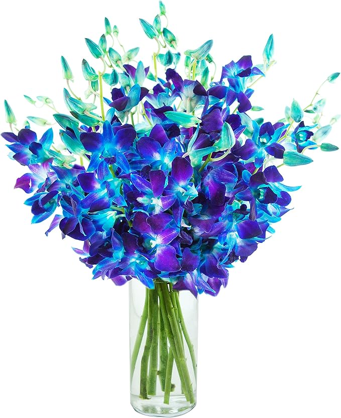 A best seller, these unique long-lasting, sapphire blue-tinted fresh cut dendrobium orchids are both graceful and vibrant making them perfect for any occasion including Easter, Mother’s Day, Baby Showers, Bridal Showers, Corporate Gifts, and Gifts for the Home. Amazon Prime Members can enjoy free shipping with free next-day delivery.