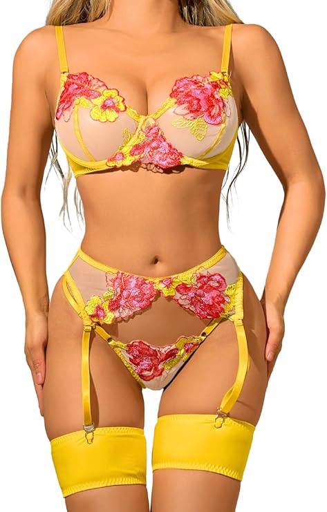 - ✿Style: This underwire lingerie with delicate floral embroidery can enhance femininity and outline your sexy breast lines.