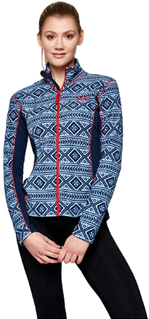 When you want to stay warm and comfortable, the Kari Traa Flette Full Zip Fleece Sweater is there for you. Made from a comfortable poly-fleece blend, it’s warm and breathable, and also features flatlock seams for a smooth finish. The high collar protects your neck from rough winds, and with a chin guard, you won’t have to worry about zipping it all the way up. The Kari Traa Flette Full Zip Fleece Sweater comes in a unique all over print for a stylish look you can wear under a jacket or around the resort