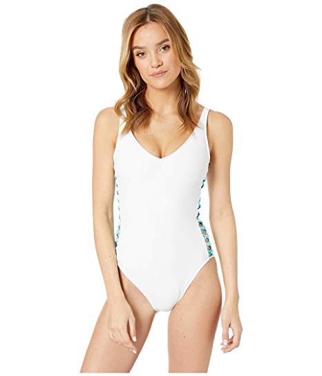 Knotted lace down suit with deep v at front and back for an attractive, sophisticated look.