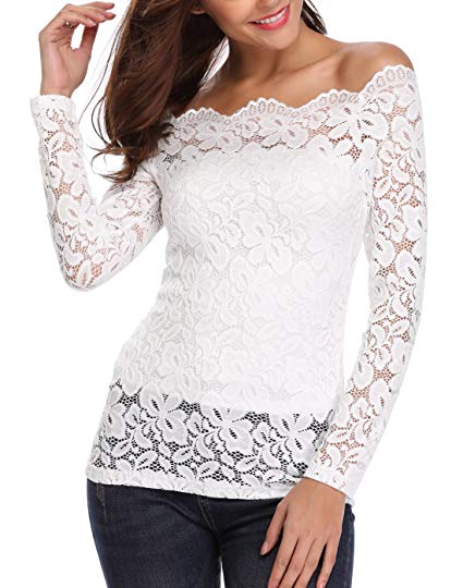 - Sexy off shoulder design and all over lace patchwork provides a flattering and elegant look.