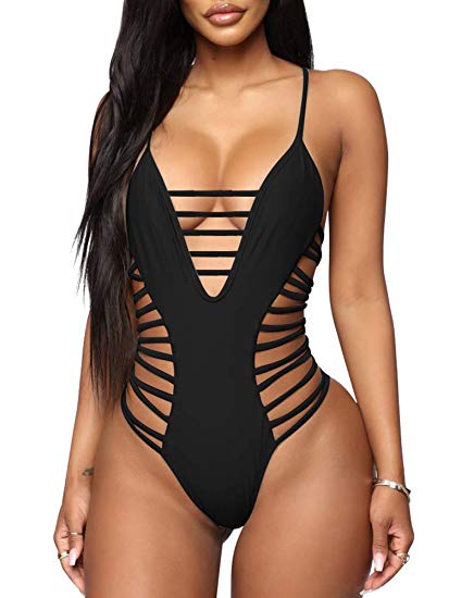 YMDUCH Women’s Sexy Lace Up Straps One Piece Cutout Swimsuit Swimwear