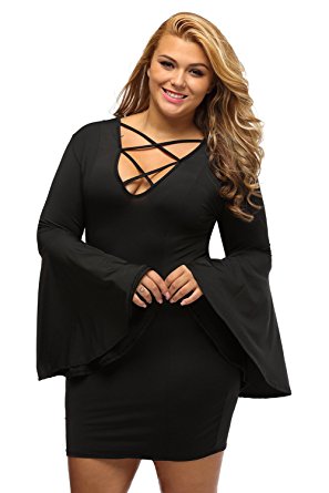 ➧Feature: Sexy, Bell Sleeve, Lace Up, V Neck, Plus Size.