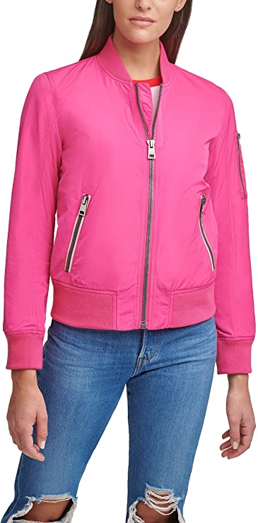 Classic bomber jacket in a newport polyester with rib knit collar, cuffs and hem.