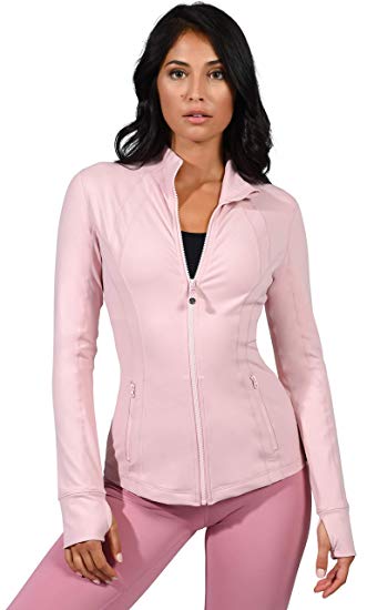 Our 90 Degree by Reflex Women’s Lightweight, Full Zip Running Track Jacket will be your go to essential this season. The Full Zip Jacket provides you with a super soft layer of warmth without overheating or preventing ventilation. This full zip up innovative style was made for all body shapes, offering comfort and accentuating your silhouette. This womens jacket can be worn for all activities including yoga, exercise, gym, fitness, running, any type of workout, or everyday use. This women’s athletic jacket offers thumb holes to increase hand coverage and warmth and a side pocket where you can stash your belongings while running or working out.