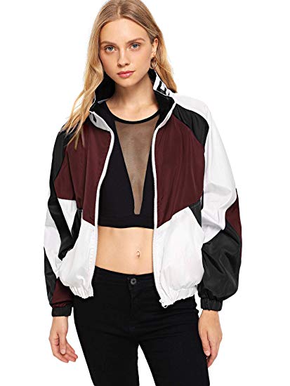 SweatyRocks Women’s Lightweight Windbreaker Patchwork Zipper Sport Jacket Coat Outerwear