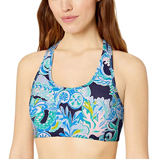 Lilly Pulitzer Size Guide Perfect your athleisure look with the Lilly Pulitzer® Luxletic Teegan sports bra. Crop top-style sports bra in a printed lightweight powerstretch knit. Offers light support for low-impact activities. Scoop neckline and racerback. Wireless design is free of padding. Visible topstitching. Slips on over head. 88% polyester, 12% spandex. Machine wash, tumble dry. Imported. If you’re not fully satisfied with your purchase, you are welcome to return any unworn and unwashed items with tags intact and original packaging included.