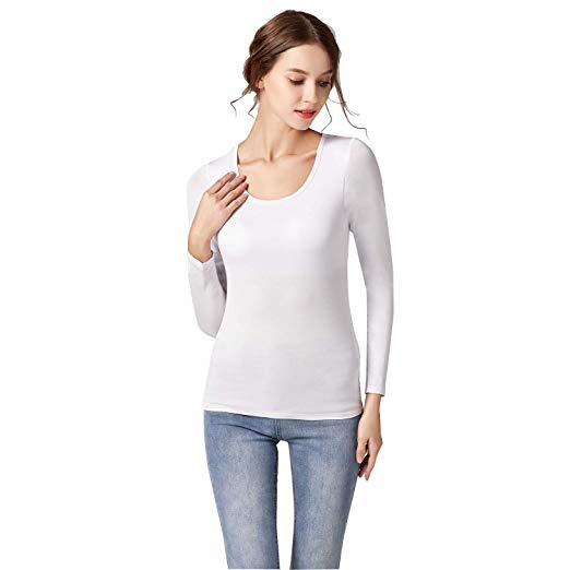 This Scoop Neck Long Sleeve T-Shirt Tops with Build in Shelf Bra Padded is made of viscose and spandex,stretchy and breathable, lightweight and durable to wear, smug to you skin.