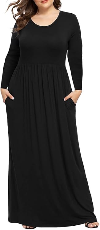 - Features: Stretchy and comfortable plus size maxi Dress with a Casual style. It has two side pockets, a round neck, and a ankel-length design. Suitable for women looking for stylish and comfortable dresses