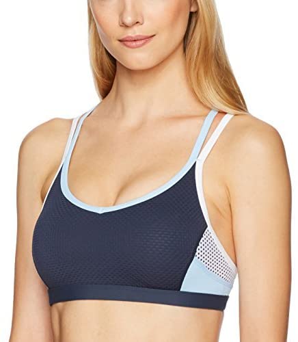 Jump and twist in style wearing this Strappy back bra. Features color blocked mesh panels for a fashionable look and an open back for extra ventilation where you need it most.