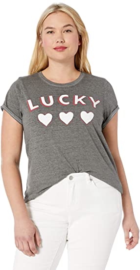 Plus size short sleeve scoop neck t shirt with contrast lucky heart graphic.