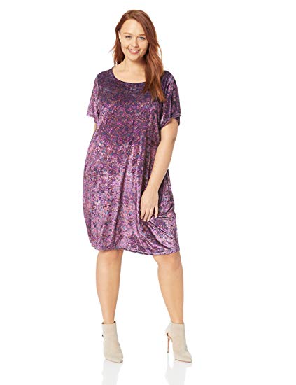 Short sleeve scoop neck printed velvet tee shirt dress.
