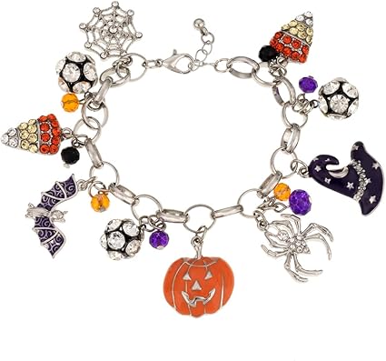 - 【HALLOWEEN JEWELRY FOR PARTY】:SIZE:6in(15.2cm) and 1.3in(3.3cm)extend, charm bracelets with lobster clasp for easy adjustment, Pls allow a little difference due to the manual measurement and check the size before ordering. in case the bracelet is too large or too small for you. Wear it at Halloween or fancy dress parties and you will become the center of attention in the crowd.
