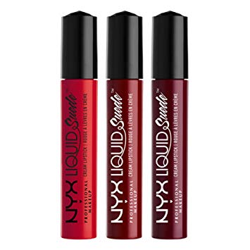 Slay in plush and vivid color with the special-edition NYX Professional Makeup Liquid Suede Cream Lipstick Set! Featuring a trio of highly pigmented shades, each waterproof liquid lipstick goes on opaque and dries to a matte finish.