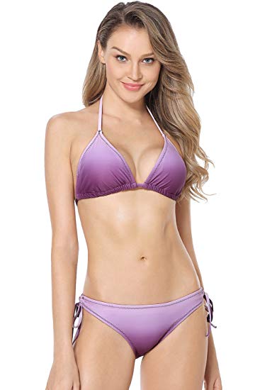 + Gradient triangle bikini set, adjustable ties at neck and back for perfect fit