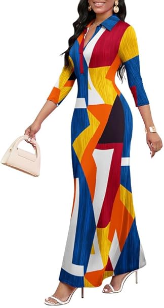 - Design: The 3/4 sleeve dress for women retro elegant style. Shirt collar, deep v neck, wrap dress long maxi shirt dress, african ethnic print. Bodycon maxi dress makes you more charming.
