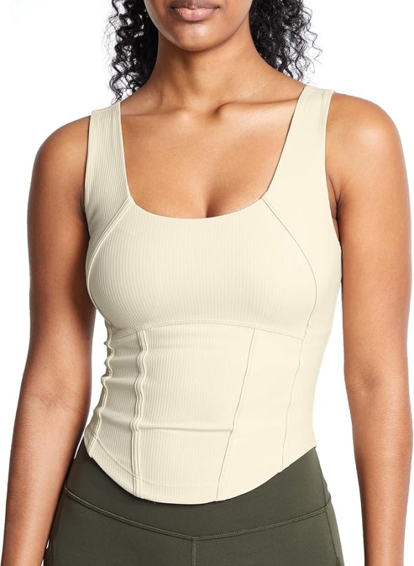 - Womens workout top made from high-quality ribbed fabric that is soft, sweat-wicking, and keeps you dry during intense workouts