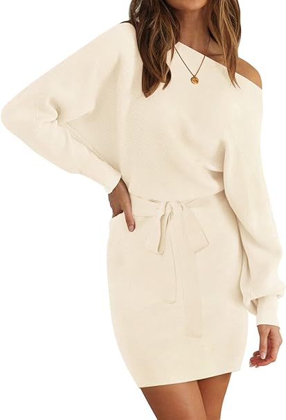 - We’re dreaming of a cozy night date in this romance Ribbed Knit Sweater Dress! Sexy off-shoulder knit reveals a charming collarbone, adding femininity, and the detachable waist belt can be adjusted the tightness at any time, easy to show your curves.
