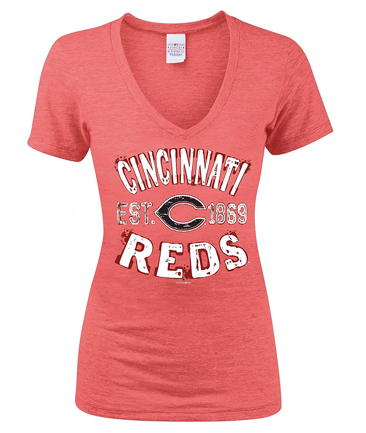 Our Ladies short sleeve V-neck is made of tri-blend slub jersey, which has a soft feel and Vintage look. Due to the nature of this fabric, your team color may be slightly lighter or darker than actual team color. Your favorite team’s logo is featured puff raised screen print. Show your team pride in style with this trend-right top.