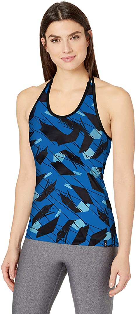 Recycled polyester multi-functional athletic tank with built-in bra offers medium support. The updated slim racerback and hip-length make the Maria tank just as flattering as it is functional. Model is 5′ 10” wearing size Small.