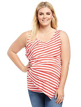 Maternity tank Plus size Original fit Check out our sizing guide for more information Sleeveless Scoop neck Tiered Uneven hem Striped Rayon/spandex Jersey knit Machine washable Imported
