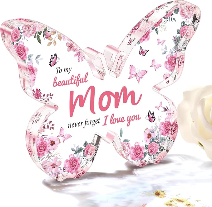 - Unique Gifts for Mom: Our butterfly-shaped acrylic keepsake with the sentimental message “To my beautiful mom, never forget that I love you”, symbolizing grace and enduring love, Express your love with athis unique mom gift. This is the best birthday gift for mom from daughter and son