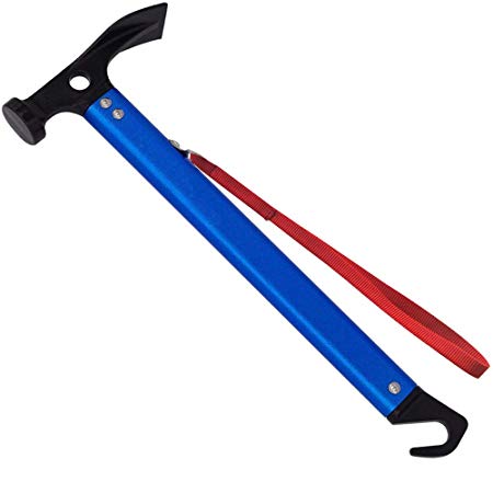 Product Name: Camping Hammer Product Dimension: 325mm x 110mm Hammer Head Material: High Carbon Steel Hammer Handle Material: Anodised Aluminum Hammer Hook: High Carbon Steel Available in Colors: Blue Product Feature: Ultralight, Multifunctional, Portable, Multicolor