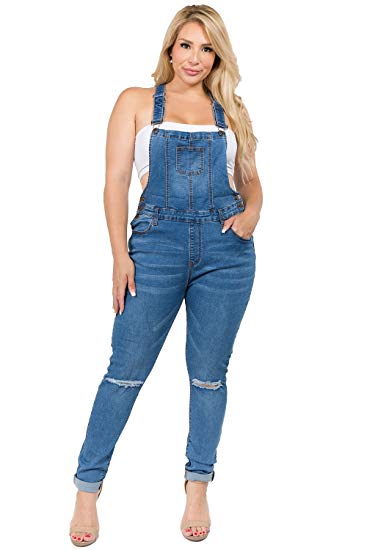 These stretch Amazing Overalls are both slimming and fashionable, metal buttons and zipper fly closure,