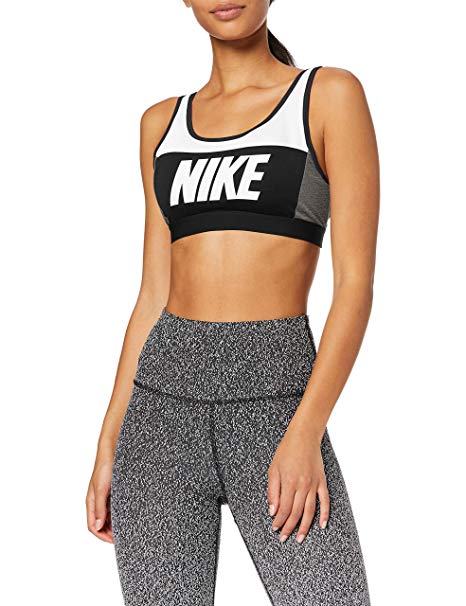 Make a statement in the beautifully color-blocked Nike Classic Sports Bra. A breathable V-back strap design lets you move freely during high intensity workouts such as spin and running, while NIKE graphics on the straps and chest make a bold statement.