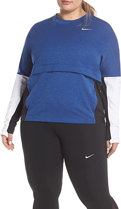 Keep training in the cold with this plus size running top from Nike, a fun colorblocked look in breathable Therma Sphere fabric for lightweight warmth. The hip-length line enhances coverage.